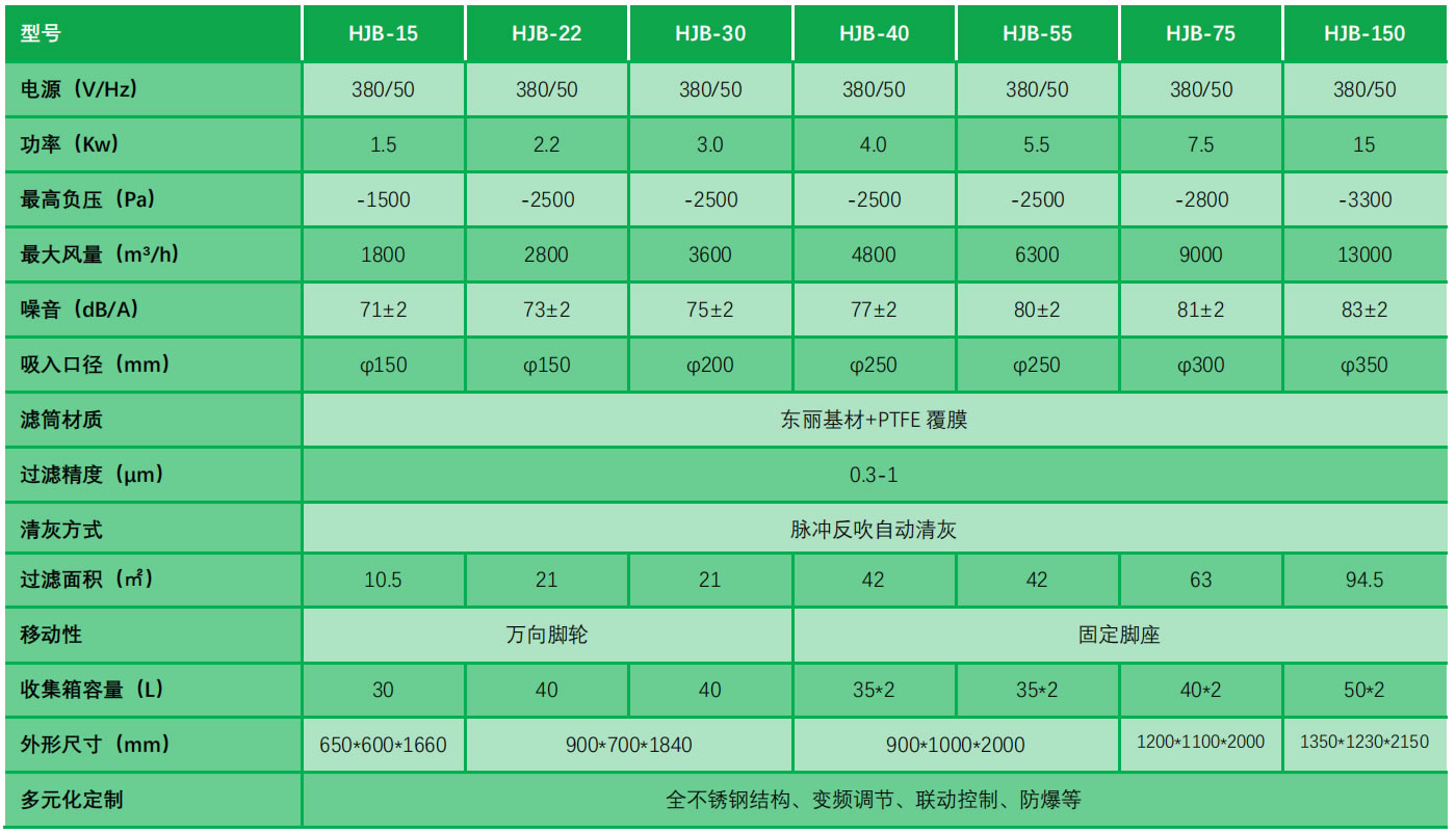 過濾系統(tǒng)方面選用濾筒式過濾器,日本東麗聚酯纖維基材、標(biāo)準(zhǔn)配置 PTFE 覆膜材質(zhì),對(duì)直徑在 0.3μm 以上粉塵精度達(dá)到 99.15%以上。